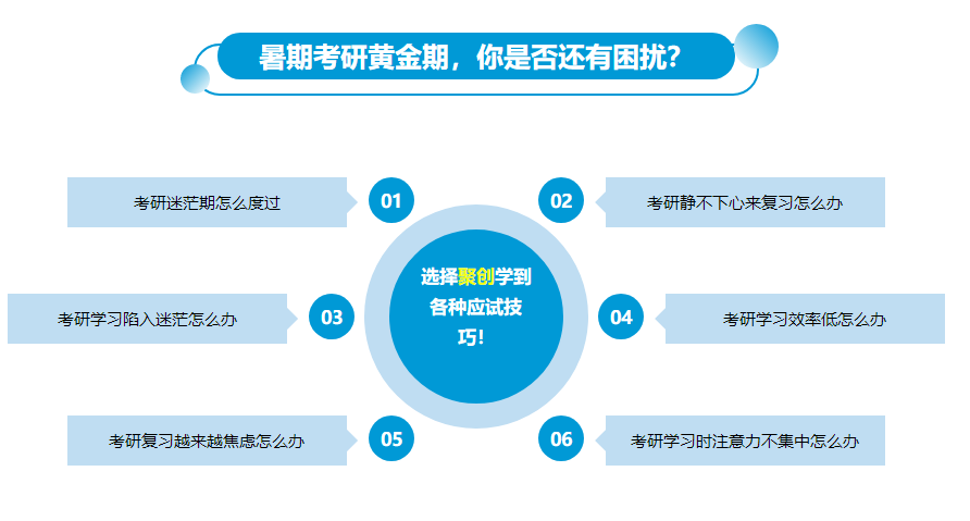 聚创考研有很多辅导班型,集训营、寄宿营、政英数专项辅导班、各科专业课辅导、以及全科辅导,每个不同的辅导班都有不同的价格,感兴趣的同学可以来咨询晚玉学姐哦!