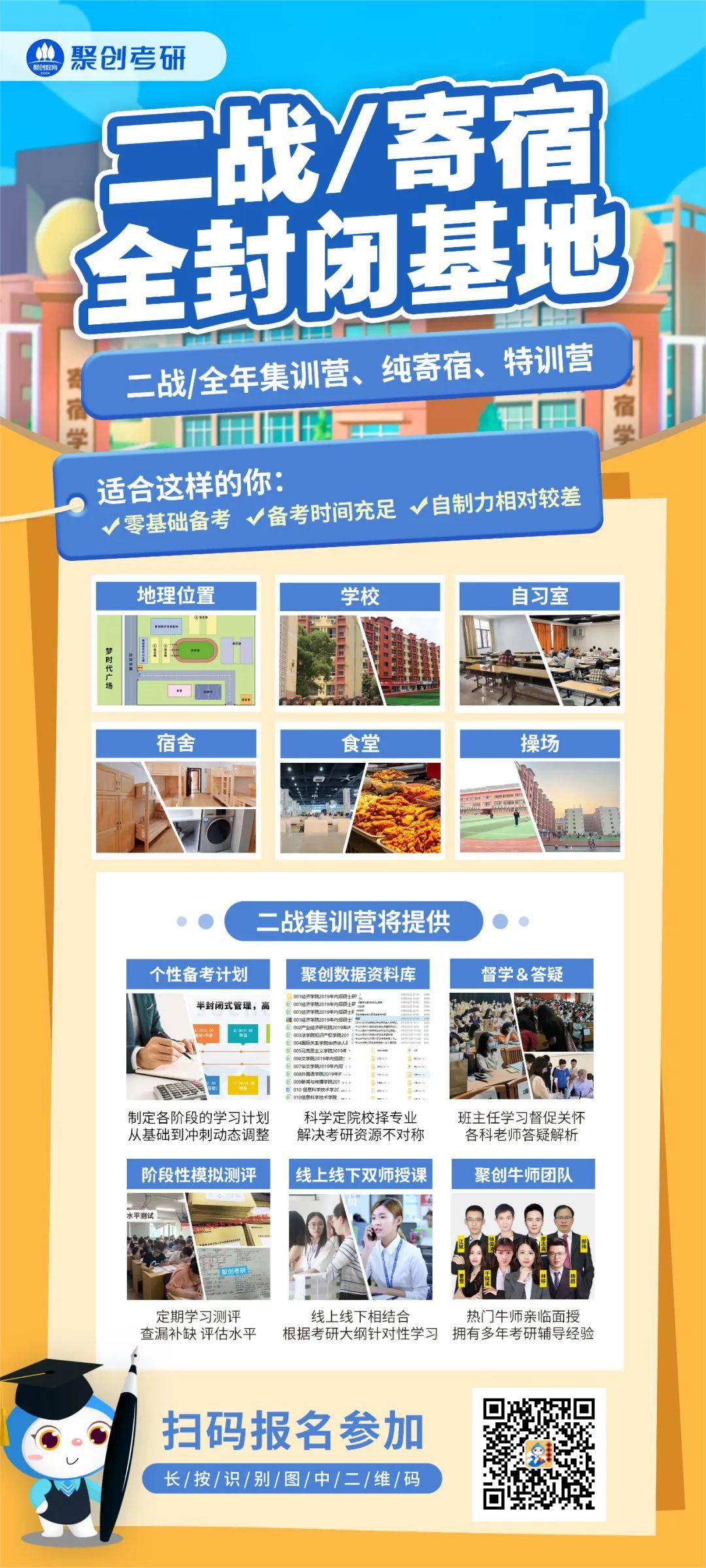 而暑假这个黄金时间报个辅导班,利用好,复习效率会提高很多。聚创考研在广东各地区有多个线下教学点,在广州有开设有暑期集训营(课程+住宿),有想要了解的同学可以添加学姐微信juchuang114咨询~
