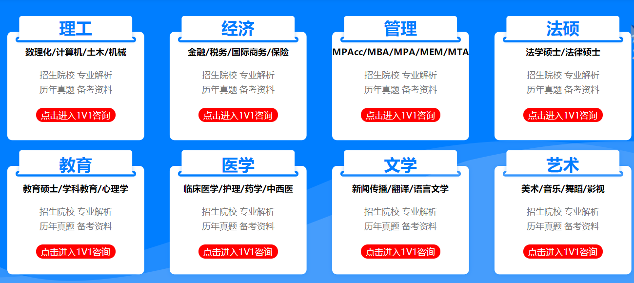除此之外,还有许多的专业课辅导课程体系,不管你是理工科还是经济类又或者是难啃的医学教育学等等,我们都有一套完整的教学体系为大家服务,为大家提供精准的院校专业选择,以及专业解析,提供该学校该专业的历年真题以及备考资料。