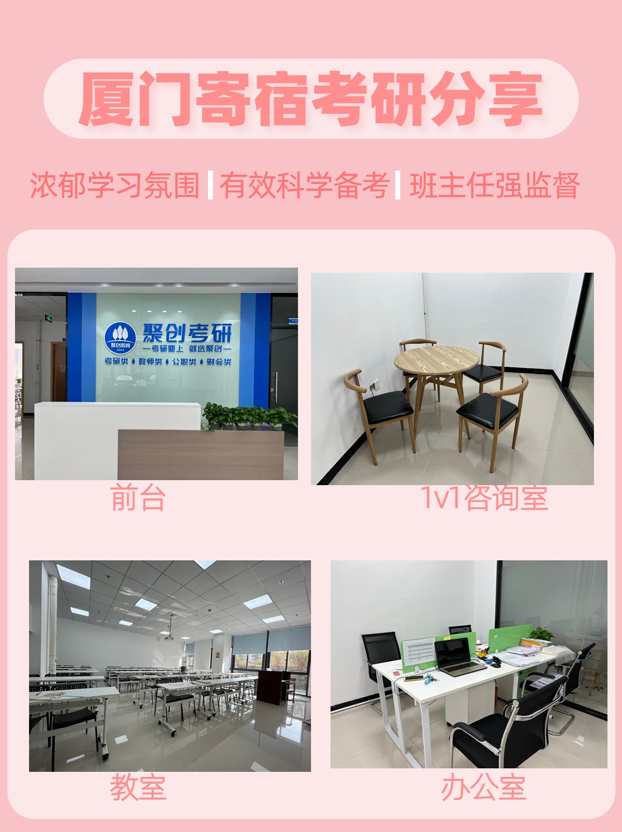 作为厦门的一家考研寄宿学校,厦门聚创考研拥有三年的管理经验,专业且年轻,管理人员沟通起来没有压力,尽可能地满足学生的需求。