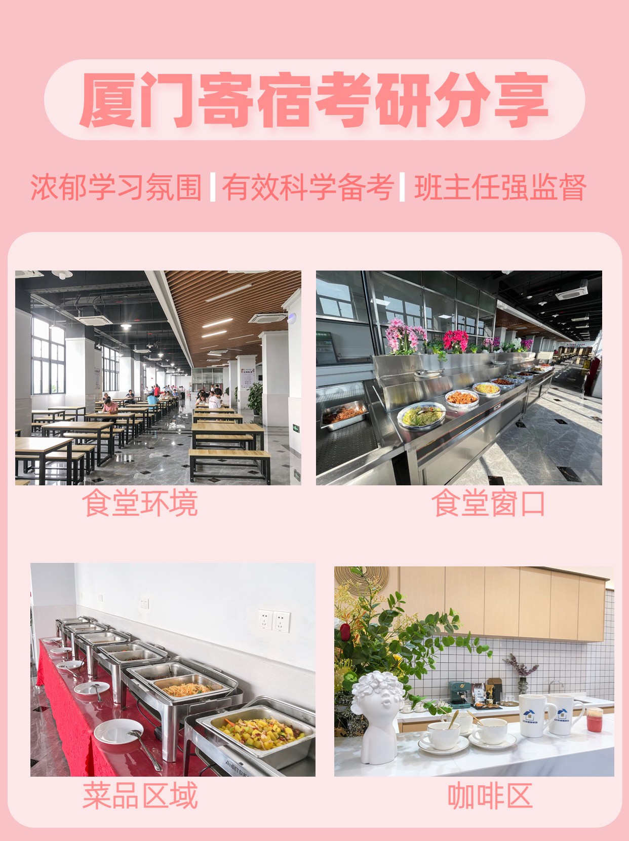 寄宿考研学校提供半封闭状态的管理方式,类似于高中。这有助于考研学生全身心地投入备考中。住宿环境较为优越,摆脱了在外租房时嘈杂的噪音,而且基本设施如空调、暖气等应有尽有,还比在外租房更加经济实惠。此外,学校会有专门的班主任进行学习监管,日常进行课程点名、学习计划监督、学习进度跟进等,可以帮助考研学生有效提高复习效率。