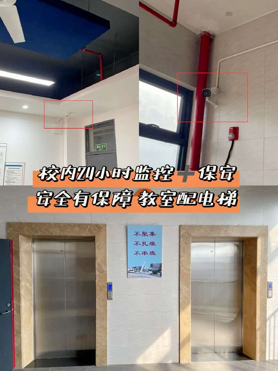 安全问题:校内24小时监控+保安巡查,安全有保障,教室还配有电梯。