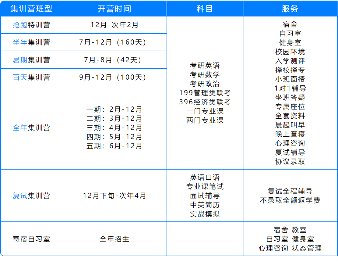 我们的主要课程班型有集训营、寄宿营、公共课课程、专业课课程、以及圆梦卡系列,同学们可以按需选择自己需要的课程;