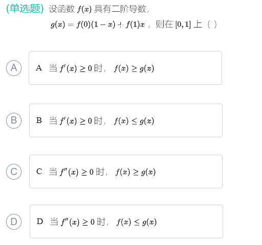 以上是聚创考研网为考生整理的"2024年考研数学:二阶导数Part.182"的相关考研信息,希望对大家考研备考有所帮助! 备考过程中如有疑问,也可以添加老师微信juchuang911进行咨询。