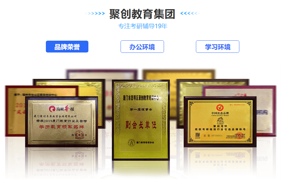 聚创考研培训中心创立于2004年,是一家专注大学生考研、深造、就业领域的教育培训机构,直营分校涵盖福建、广东、江西、重庆、浙江、湖南等全国各省市。19年来聚创考研始终秉承“让您学有所成,让教育成就梦想”的企业使命,为学员提供优质高端的教育培训服务,助力考研学子一战成硕!