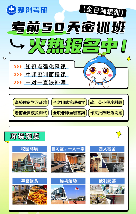 以上是聚创考研网为考生整理的"福州聚创考前冲刺集训营,福州考研培训机构排名榜"的相关考研信息,希望对大家考研备考有所帮助! 备考过程中如有疑问,也可以添加老师微信juchuang911进行咨询。