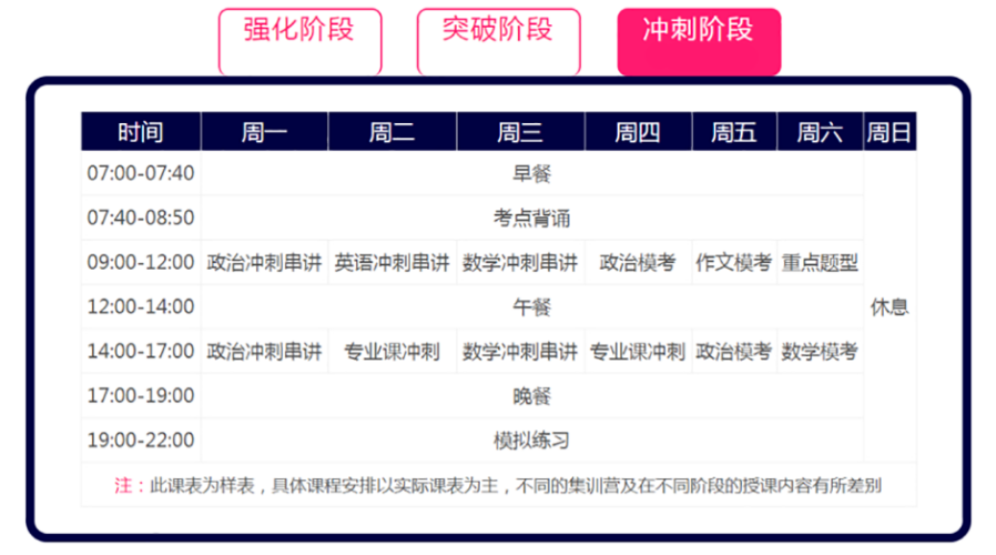 厦门聚创教育就是经过十余年的艰苦创业和一代又一代聚创人的拼搏努力,为同学们创造良好的学习环境,服务学生超过千万人次,针对不同学生进行全程、全方位、个性化的辅导。并且有班主任全程监督+心理疏导,提供全套复习资料。更有考研寄宿集训营包住宿,配备齐全的运动设施,有食堂和便利店,生活无忧。
