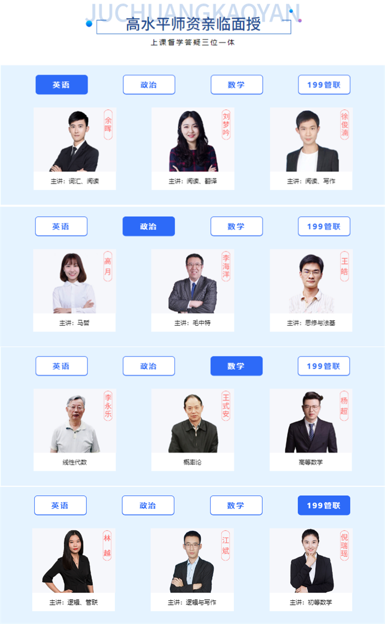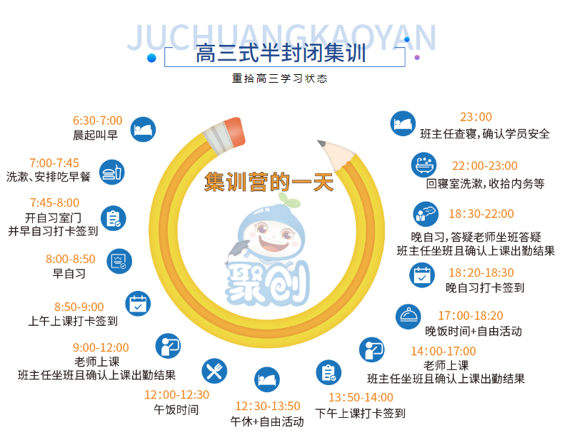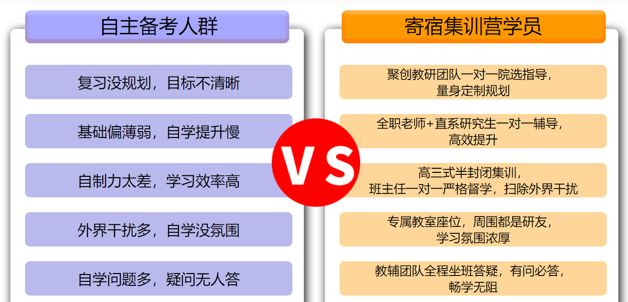 以上是聚创考研网为考生整理的"厦门全封闭考研培训,厦门全日制考研培训班"的相关考研信息,希望对大家考研备考有所帮助! 备考过程中如有疑问,也可以添加老师微信juchuang911进行咨询。