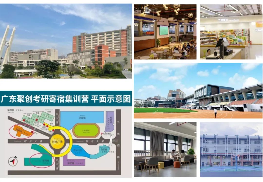 我们广东聚创考研集训营的位置位于广州市白云区,具体地址是:广州市白云区钟落潭镇九佛西路280号(广东白云学院校内)。学校临近地铁,交通非常方便。