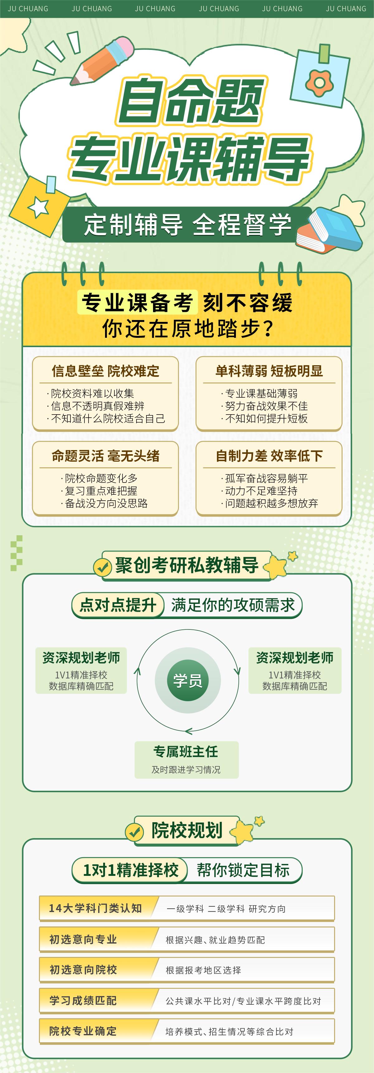 以上是聚创考研网为考生整理的"南昌一对一考研文科专业课辅导,南昌考研专业课要不要报辅导班"的相关考研信息,希望对大家考研备考有所帮助! 备考过程中如有疑问,也可以添加老师微信juchuang911进行咨询。