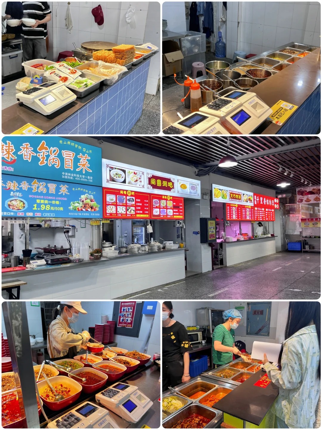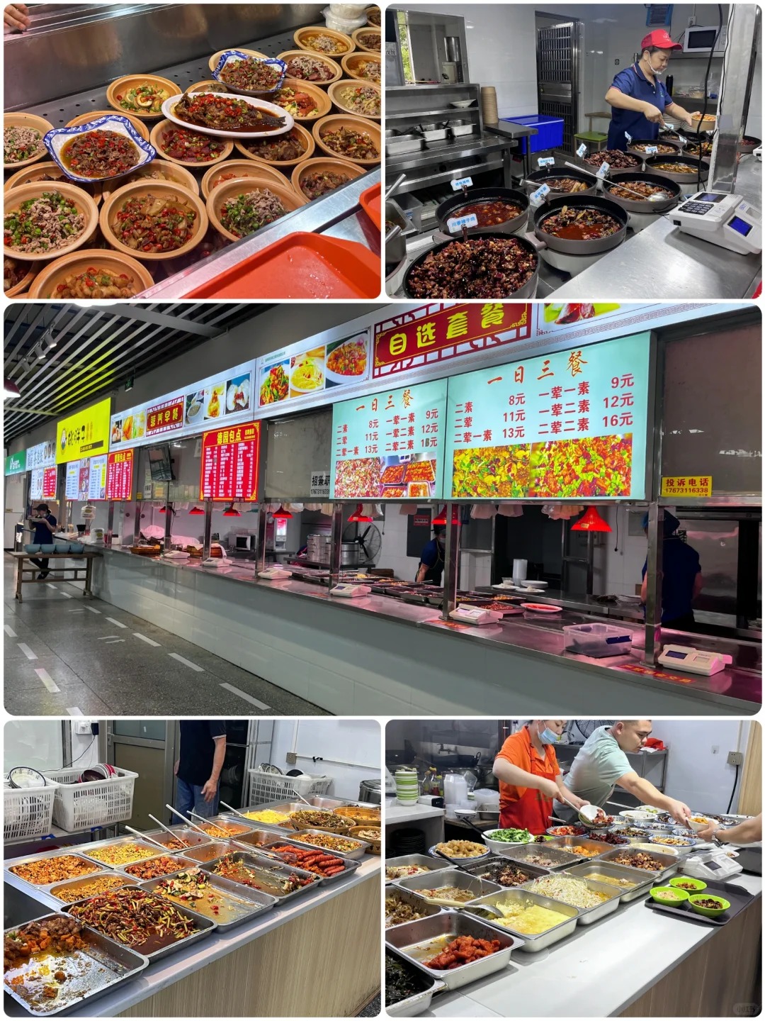 食堂美食丰富,自选菜or精品套餐饭,荤素皆有,价格大概在10R-20R。商业街也有各类美食店、饮料店、便利店,周末约上三五个研友一起吃吃喝喝,也是很好的放松。