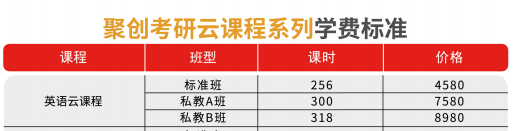 以上价格均为参考,更多班型和优惠请咨询:聚创考研网晚玉学姐(WX:juchuang911)13306030226(微信同号)