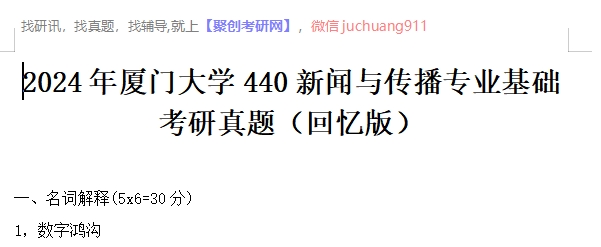 完整版请下载附件:2024年厦门大学440新闻与传播专业基础考研真题(回忆版)