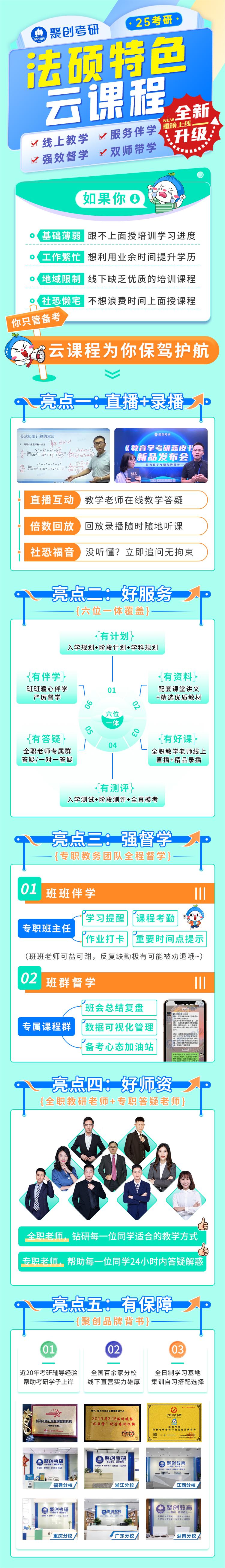 广东聚创考研是聚创考研在广东开设的直营部门,目前有开设公共课、专业课线上课程,想要了解法硕等课程的同学可以添加微信juchuang114咨询。