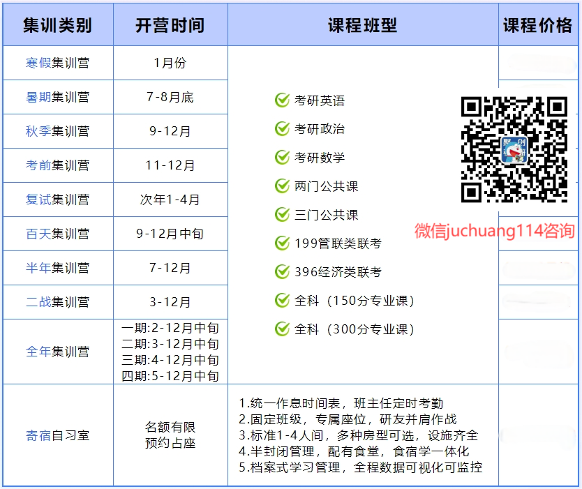 想要了解广东考研集训营的同学可以添加聚创考研官网晚玉学姐微信juchuang114或者填写表单聚创考研寄宿营/集训营-331咨询!