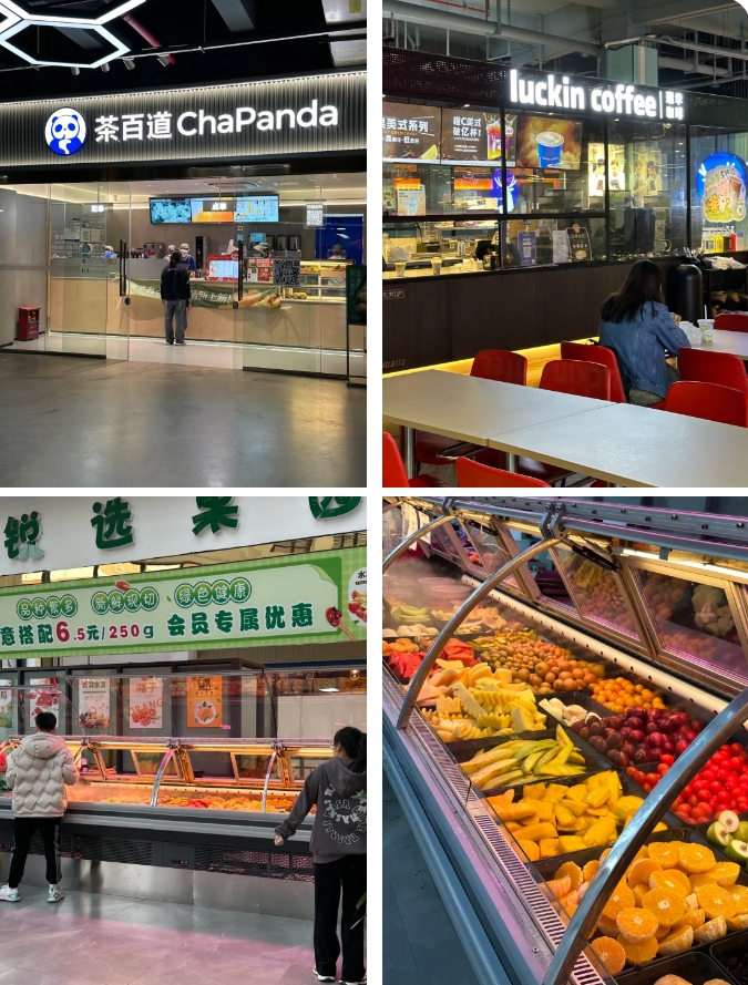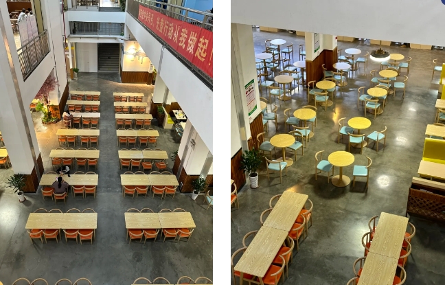 生活便利:宿舍楼下一排都是食堂档位,楼顶还有烧烤店和火锅店,用餐环境干净、卫生、整洁。此外,还有24小时营业的商店,满足学生的日常生活需求。