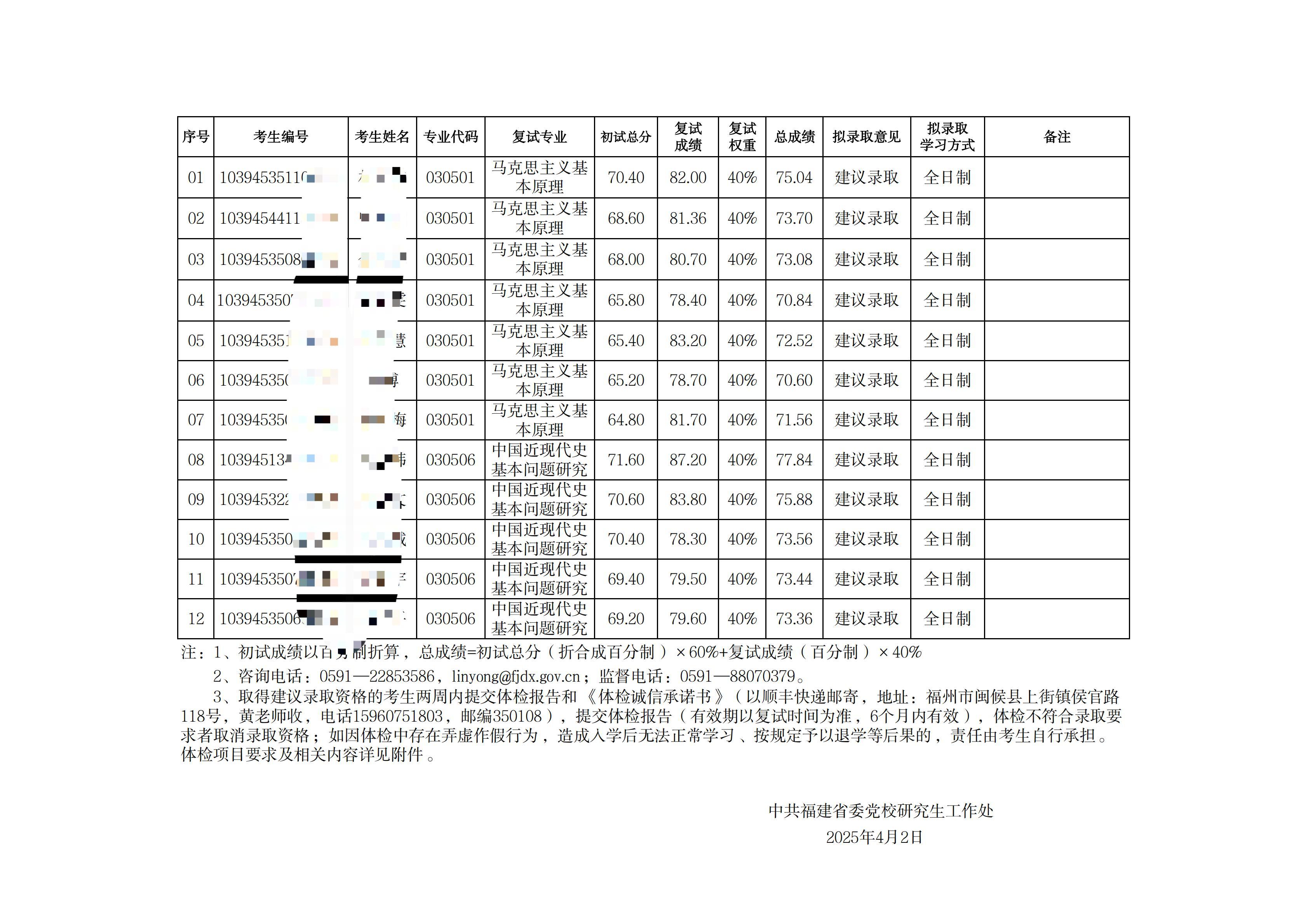 据悉,【汇总】2025考研福建师范大学各学院硕士研究生拟录取名单已公布,聚创福建师范大学考研网晚玉学姐(电话:13306030226 (微信同号))为你整理如下内容: