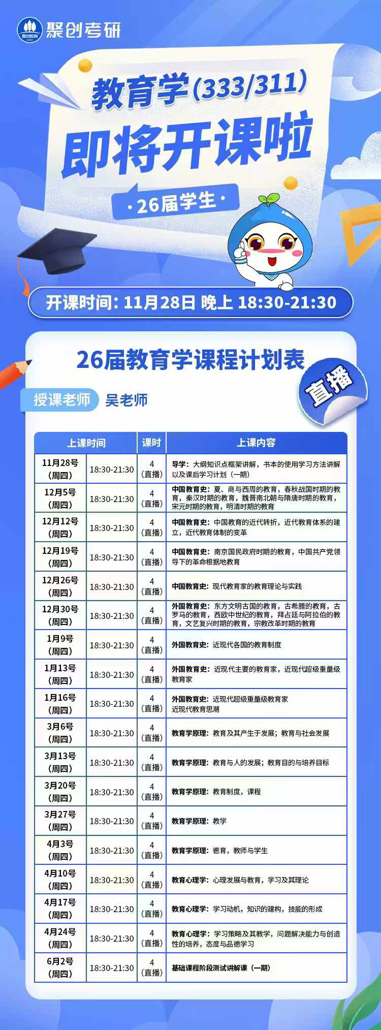 26届统考333教育综合、法律硕士、408计算机、203日语开课啦!阶段性课程安排如下,有想试听的同学欢迎咨询老师~