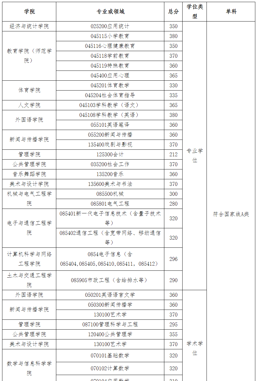 经我校研究生招生工作领导小组决定,确定我校2025年硕士研究生招生复试分数线如下: