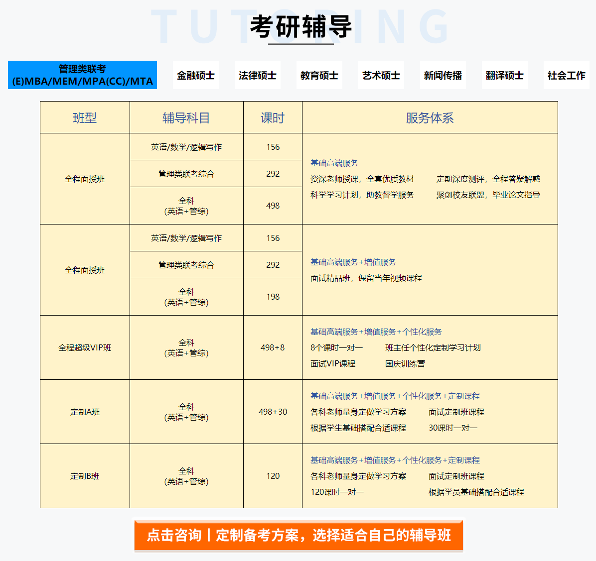 MBA提前批面试:针对报考MBA的考生,提供提前批面试的辅导服务。
