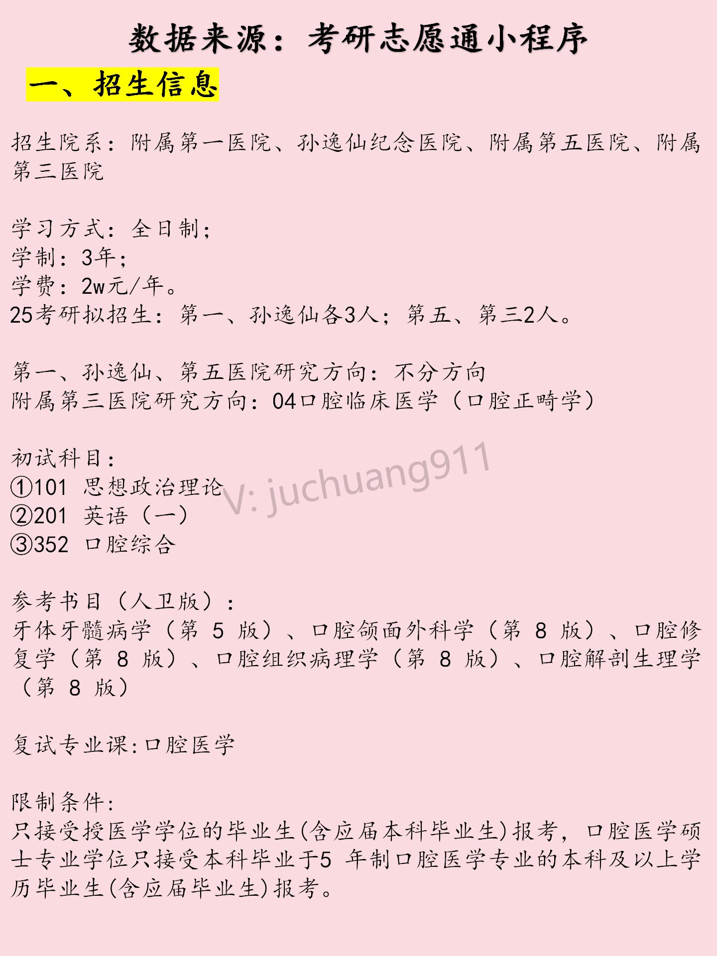聚创考研网晚玉学姐(WX:juchuang911)整理中山大学口腔医学专硕考研信息和录取情况如下。数据来源:聚创【考研志愿通】小程序,有想看其他学校和专业的相关数据,私聊我限时9.9月卡。