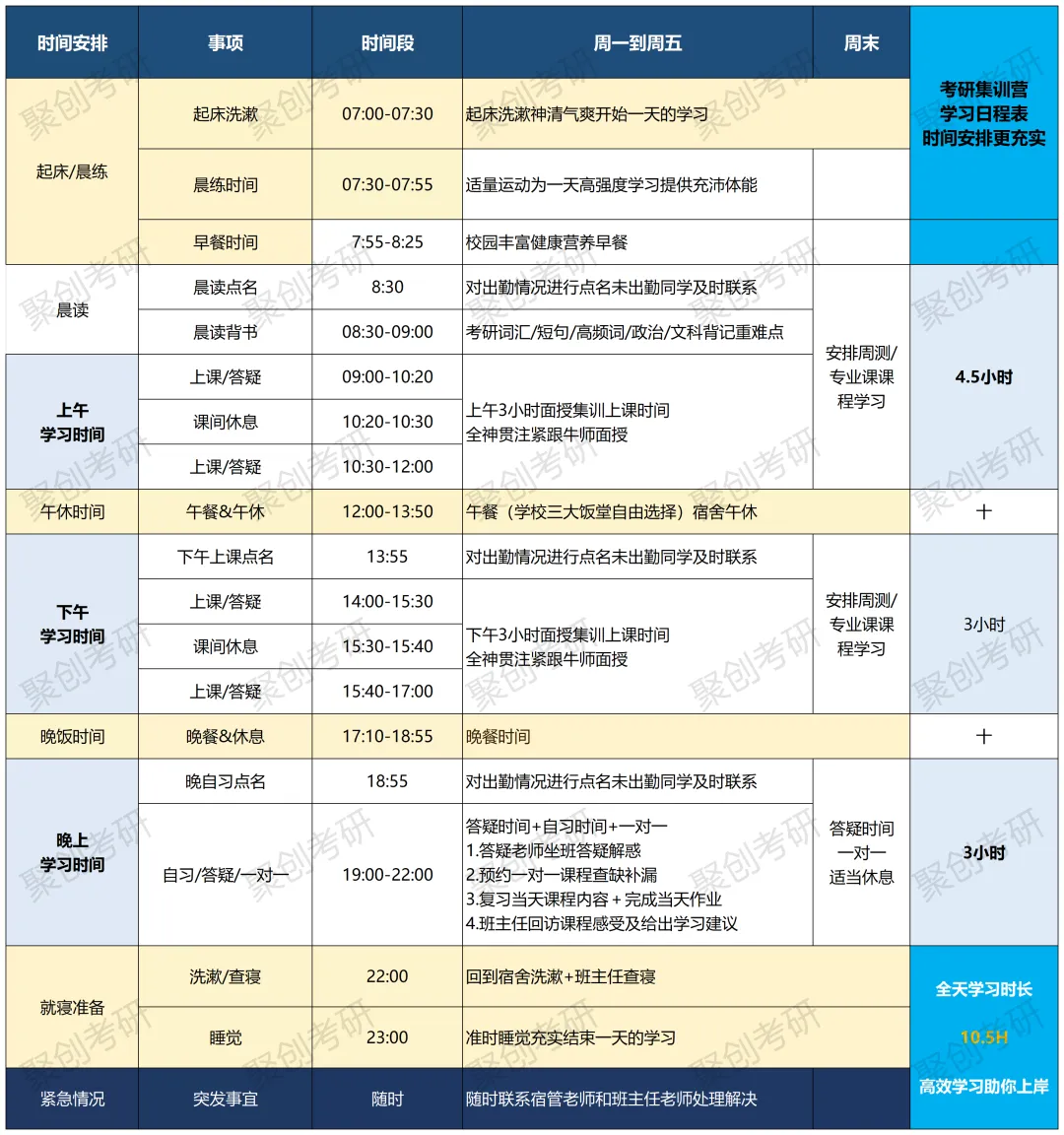 聚创考研教育综合333面授集训营提供体系化教学安排与服务,涵盖选学校选专业、备考学习规划、冲刺模考测评、全职教师跟踪答疑及心理辅导等全方位助学服务。