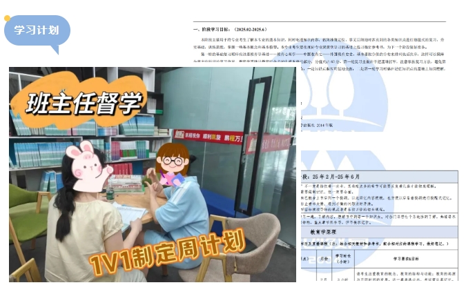 班主任1v1制定学习计划,从基础-强化-冲刺三个阶段都做出详细的学习计划,跟着老师的复习计划走,稳扎稳打!