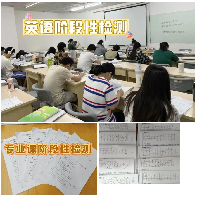 老师会安排各阶段的周测/月测、章节测试、专项测试、全真模拟测试、冲刺模考等,巩固考试重难点,熟悉考试规律和氛围。