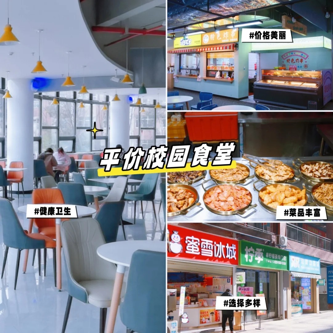 饮食选择:学校现有3个食堂和1条商业街,菜系丰富多样,能满足不同学生的饮食习惯和口味。而且价格实惠,食材安全,用餐环境干净卫生,让你吃得放心。