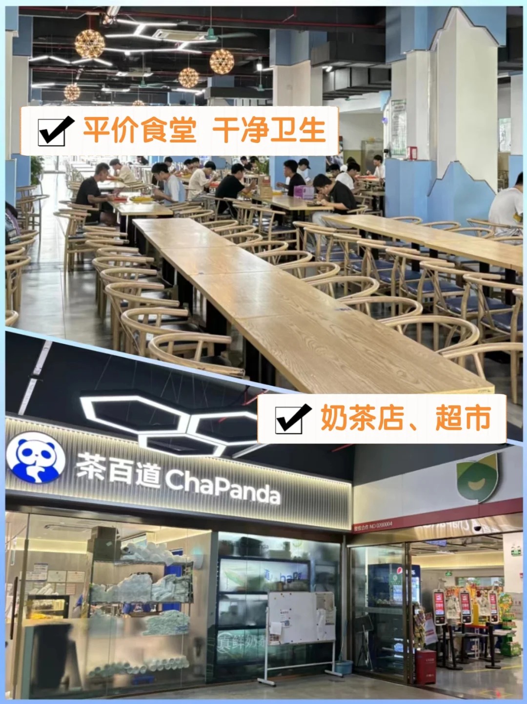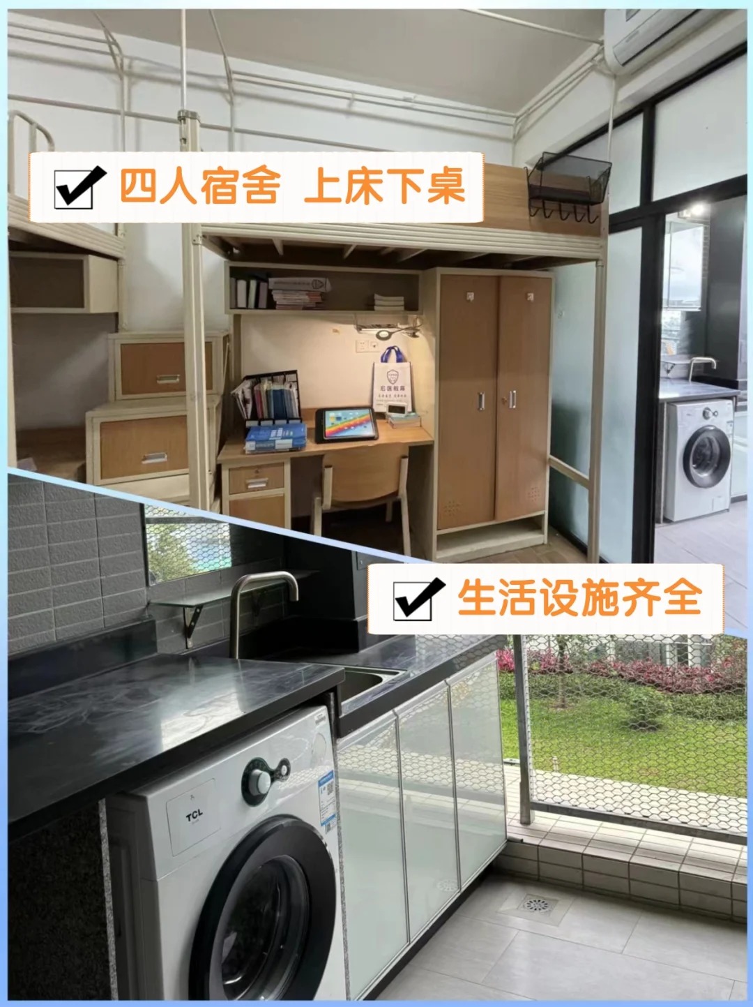 贴心生活配套:大学标准宿舍,独立卫浴、空调,食堂饭菜可口,生活无忧。