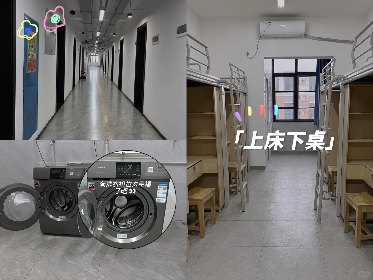住宿条件:提供1人间、2人间、4人间宿舍,上床下桌设计,配备空调、洗衣机、热水器、书桌、衣柜、独立卫浴等设施,生活便利。