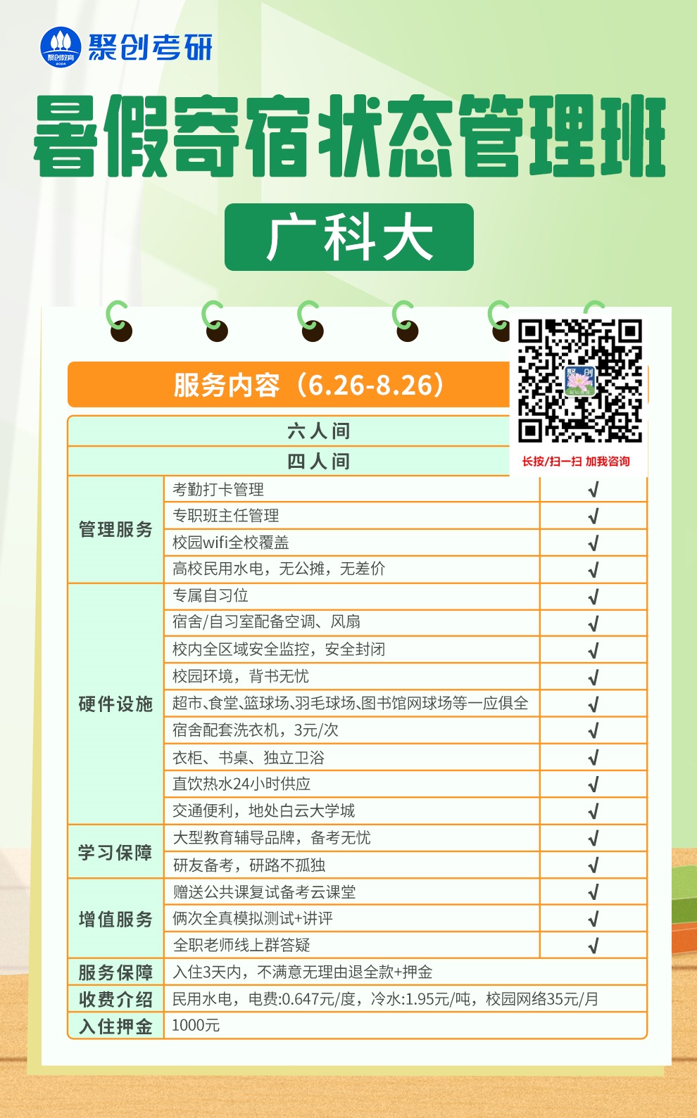 广州聚创考研推出了暑假2个月的考研寄宿营!