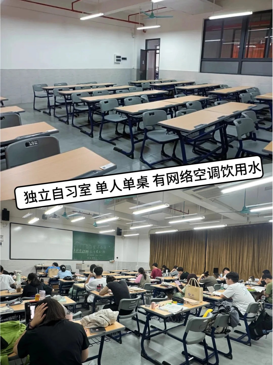 聚创考研自己校区配备的上课教室+自习教室,不和其他人共用,只提供给聚创考研学员,夏天教室配备空调 。