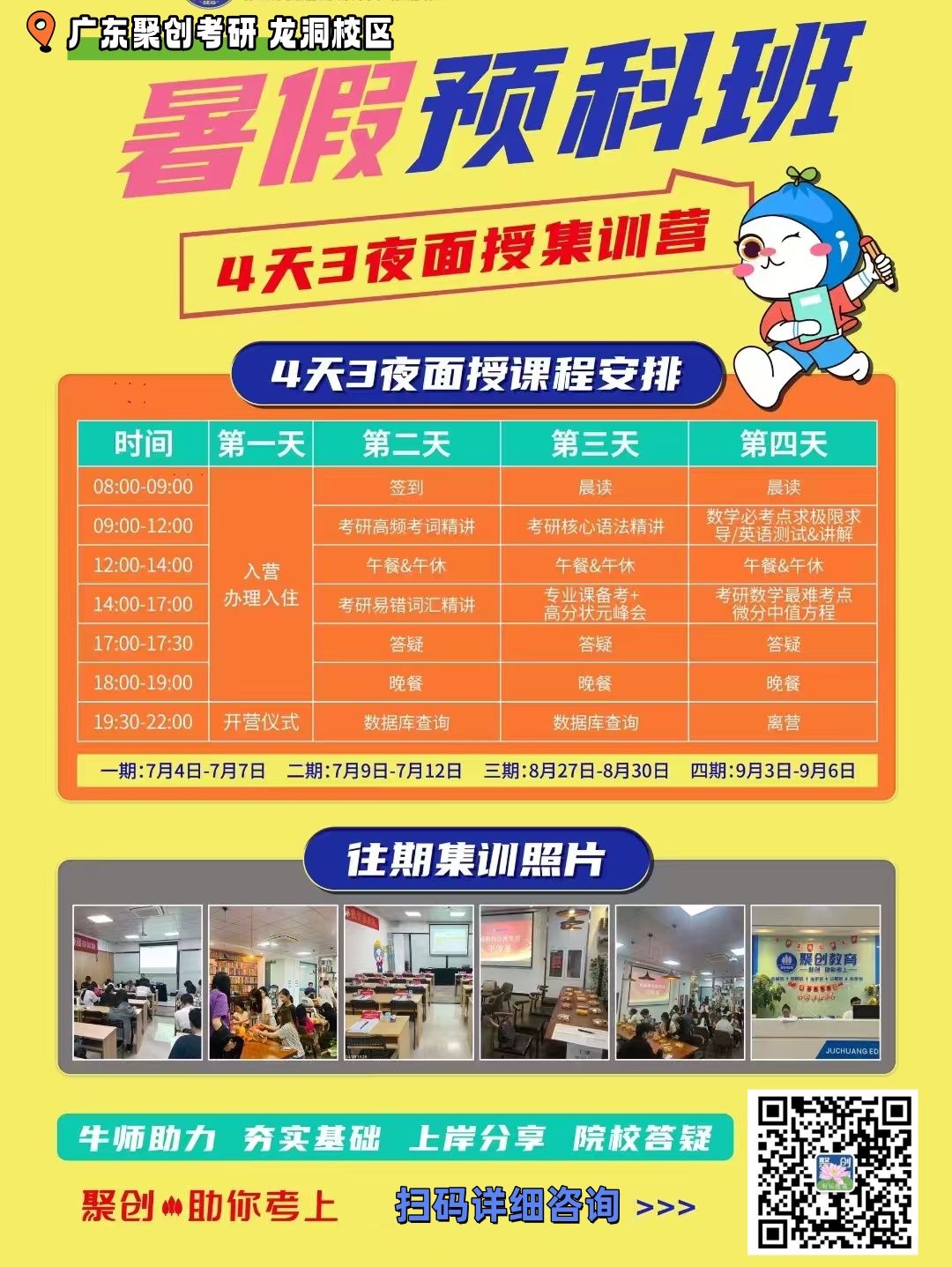 以上是聚创考研网为考生整理的"广州聚创考研暑假集训营预科班,广州聚创考研暑假预科营4天3夜集训"的相关考研信息,希望对大家考研备考有所帮助! 备考过程中如有疑问,也可以添加老师微信juchuang911进行咨询。