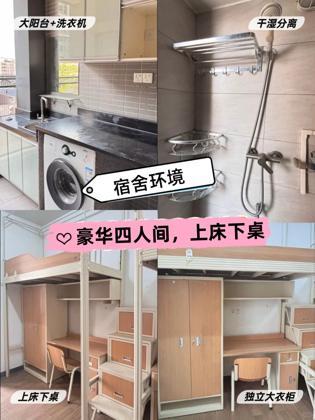 宿舍条件:4人间标准宿舍,配备书桌、上床下桌、空调、独立卫浴,安静舒适,生活设施齐全。