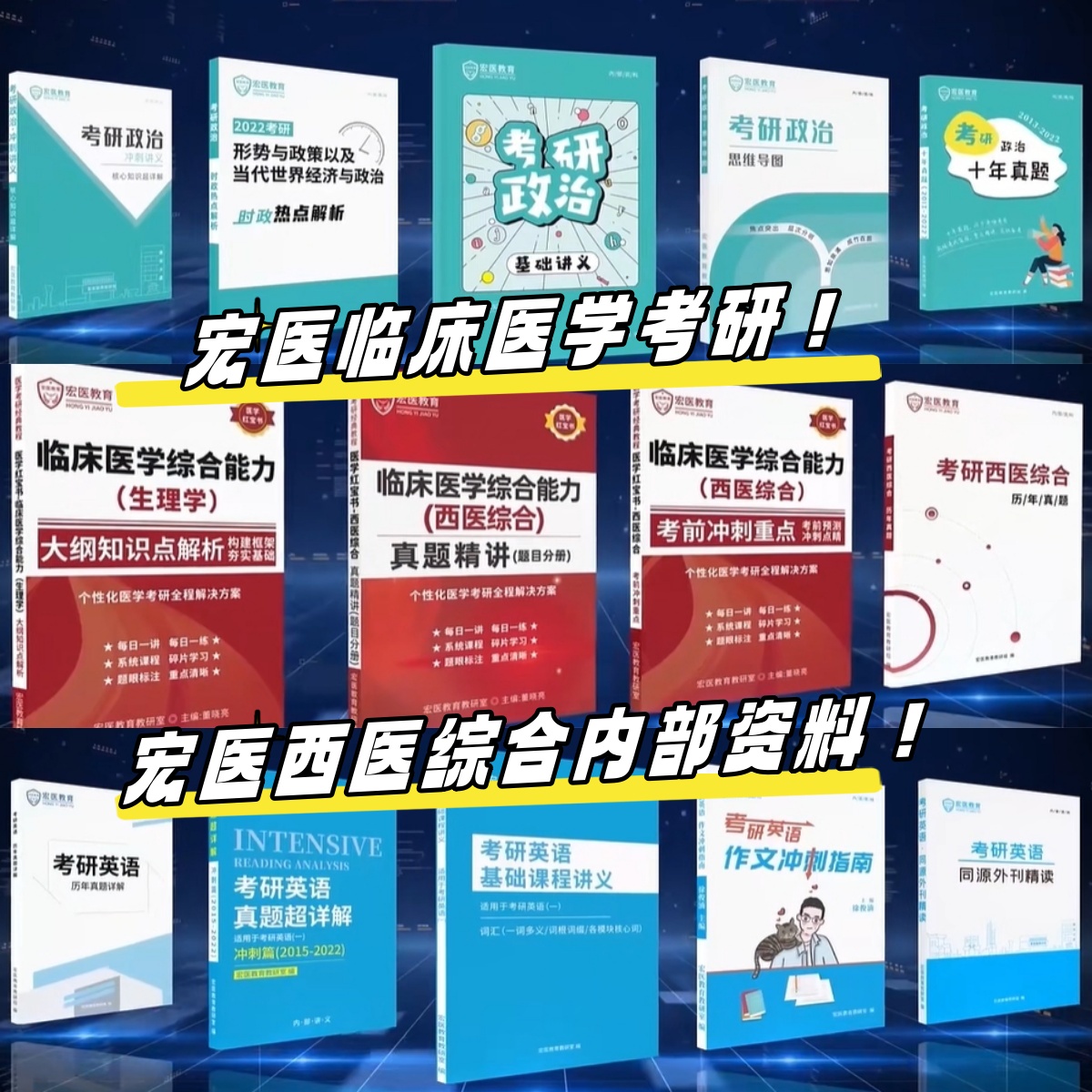 全套内部资料:宏医教育多年精细研发,针对306西医综合大纲、历年真题等,研发出一套适合西综医学考研人的专属学习资料。