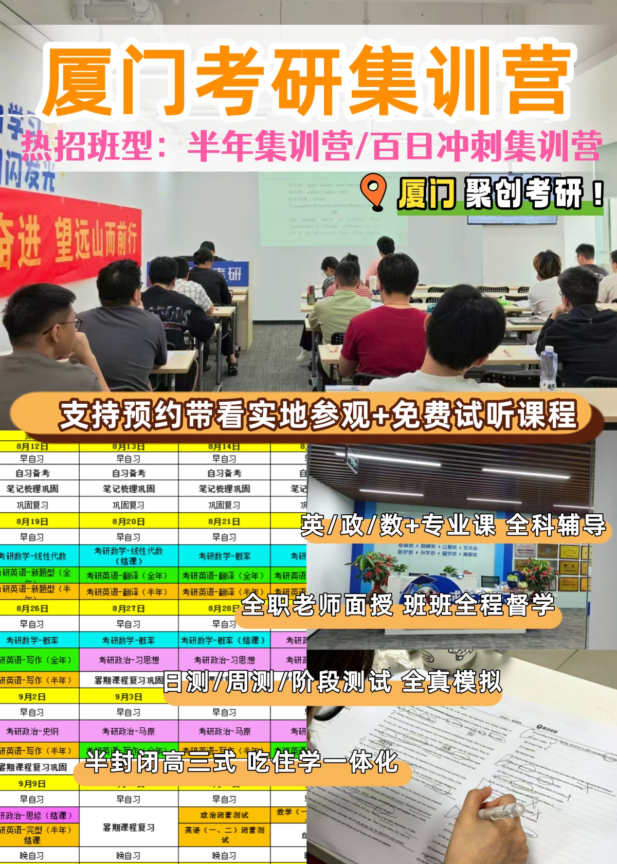 欢迎咨询、参观、试听!厦门聚创考研集训营!