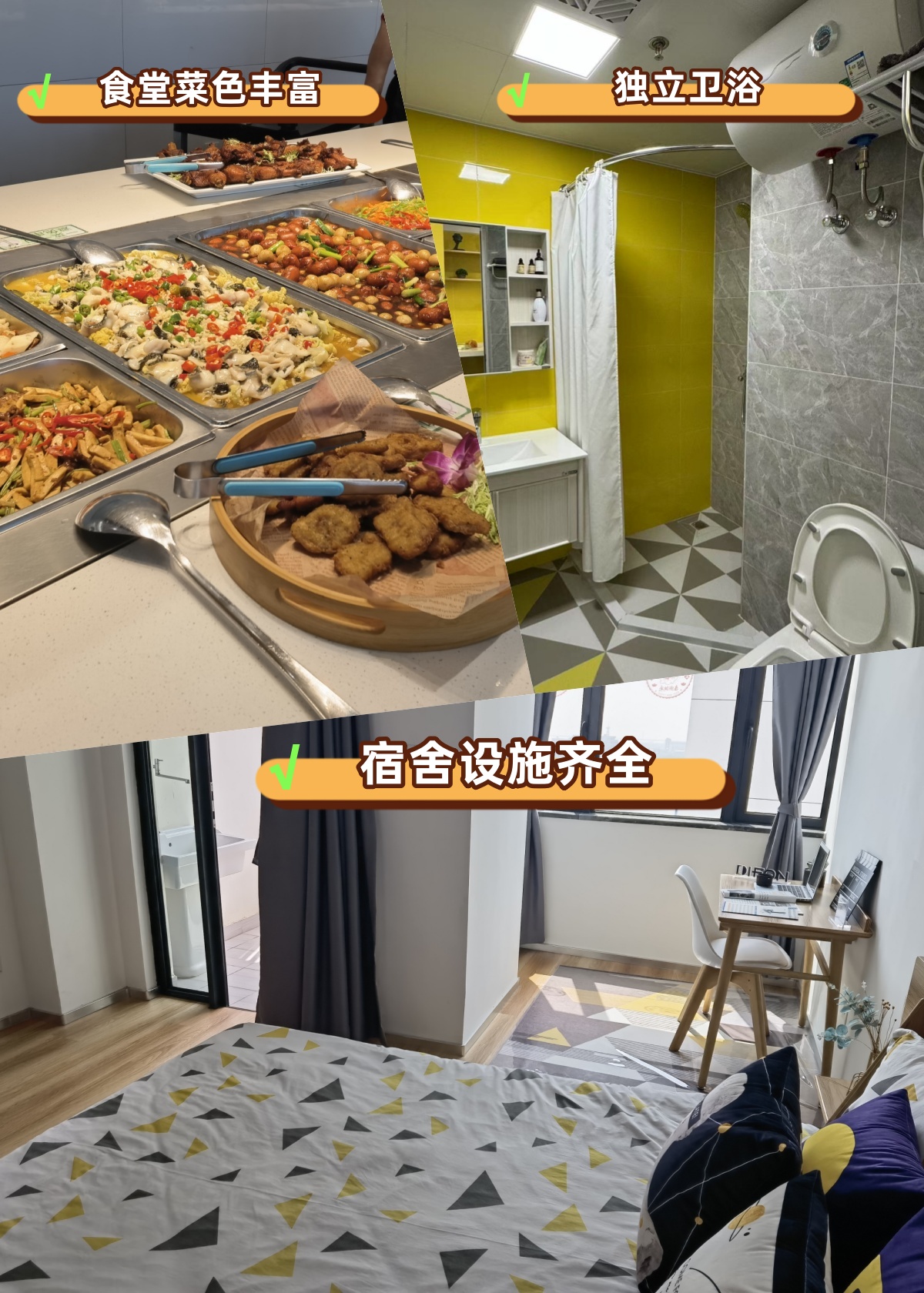 住宿区:双床下桌四人间(空调+独立卫浴+洗衣机)