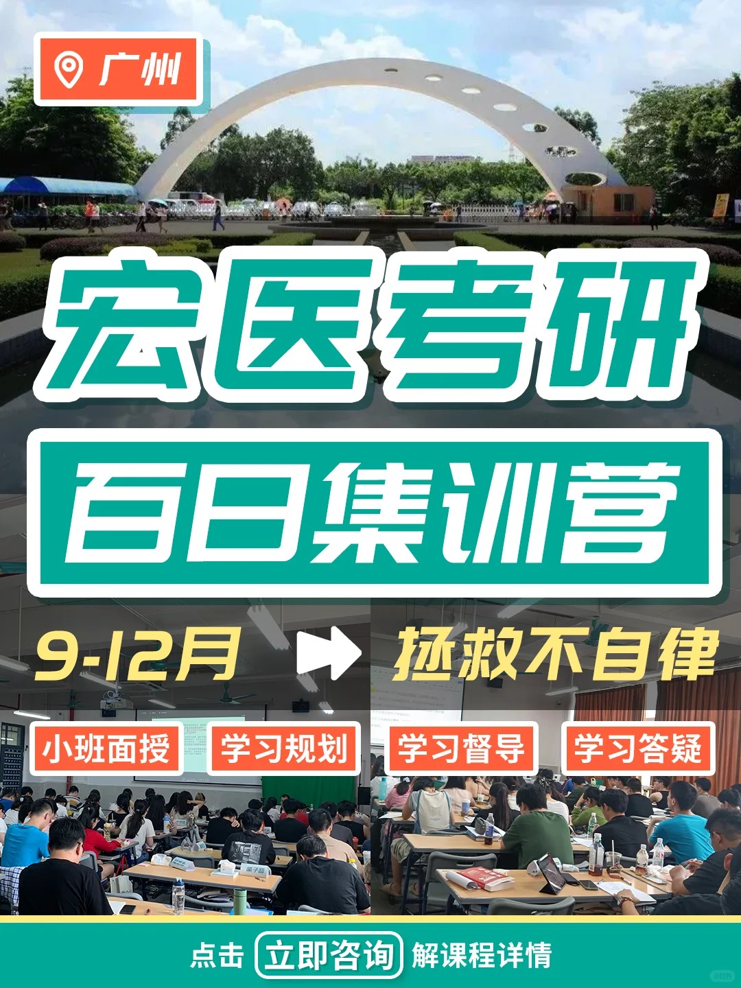 以上是聚创考研网为考生整理的"广州宏医医学考研百日集训营有用吗,广州宏医医学考研机构百日集训靠谱吗"的相关考研信息,希望对大家考研备考有所帮助! 备考过程中如有疑问,也可以添加老师微信juchuang911进行咨询。