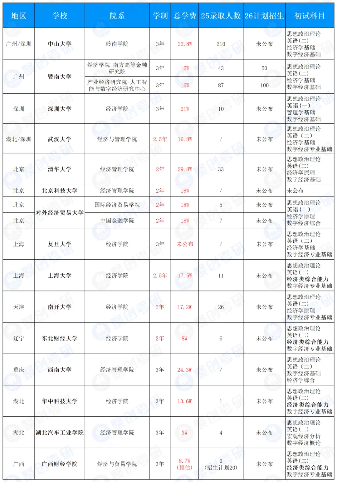 以上是聚创考研网为考生整理的"【数字经济】全国26考研数字经济专硕(非全日制)招生院校更新,12所不考数学"的相关考研信息,希望对大家考研备考有所帮助! 备考过程中如有疑问,也可以添加老师微信juchuang911进行咨询。