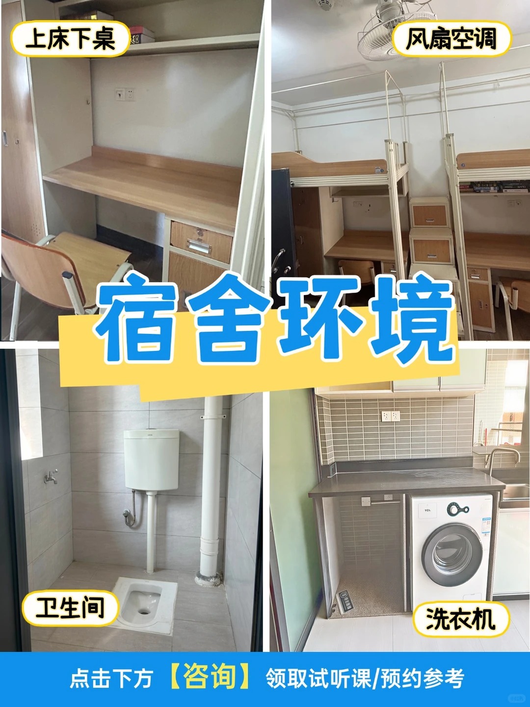 ✅饮水机、洗衣机、空调风扇配套齐全,部分校区毗邻商圈,生活购物超便利