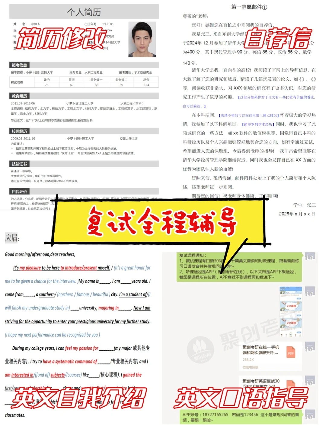 英语复试:口语复试 30 高频问、英语自我介绍优化、常考话题解析、听力素材推荐、口语发音校正等!