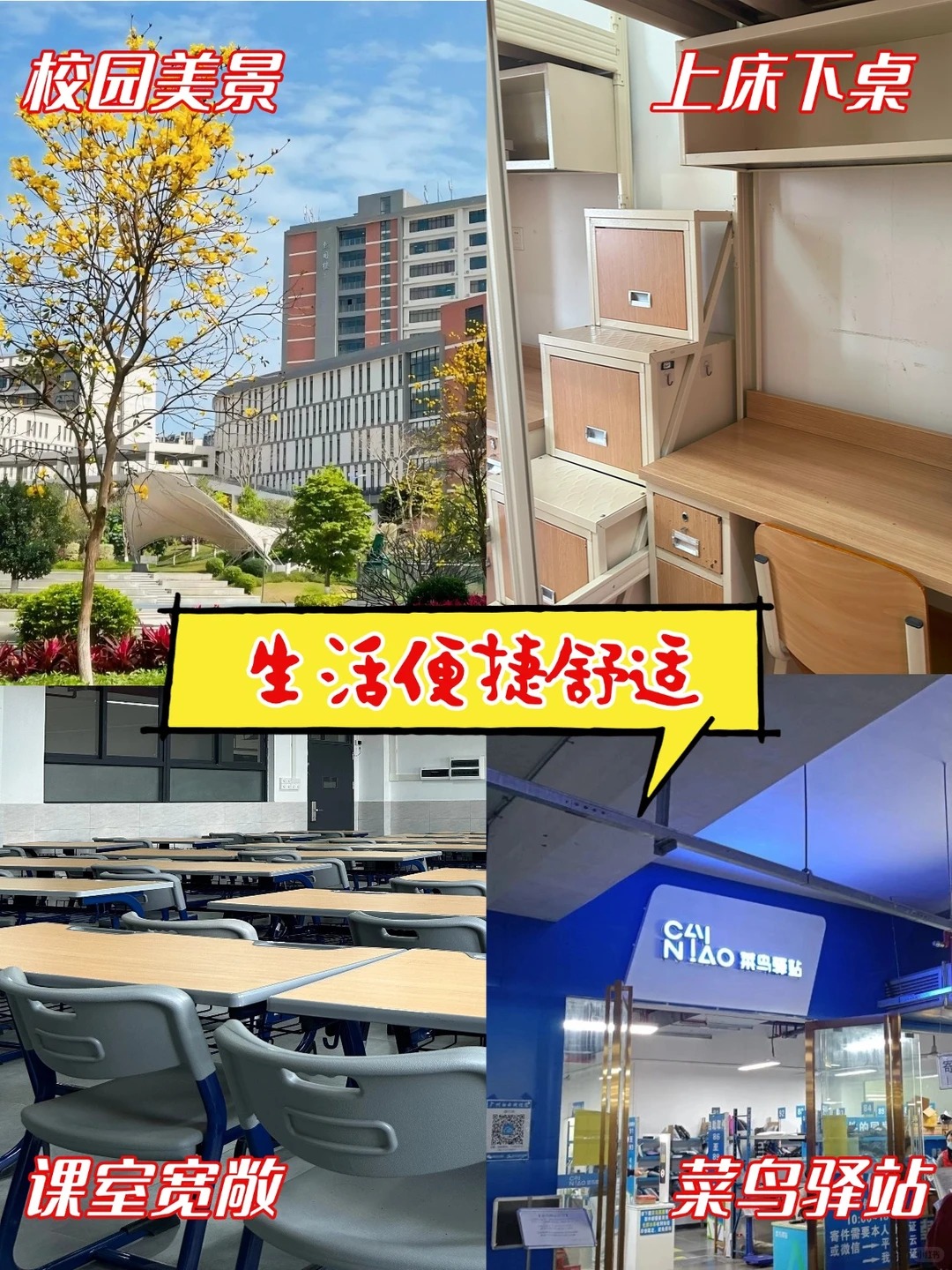 宿舍是四人间,上床下桌超方便;