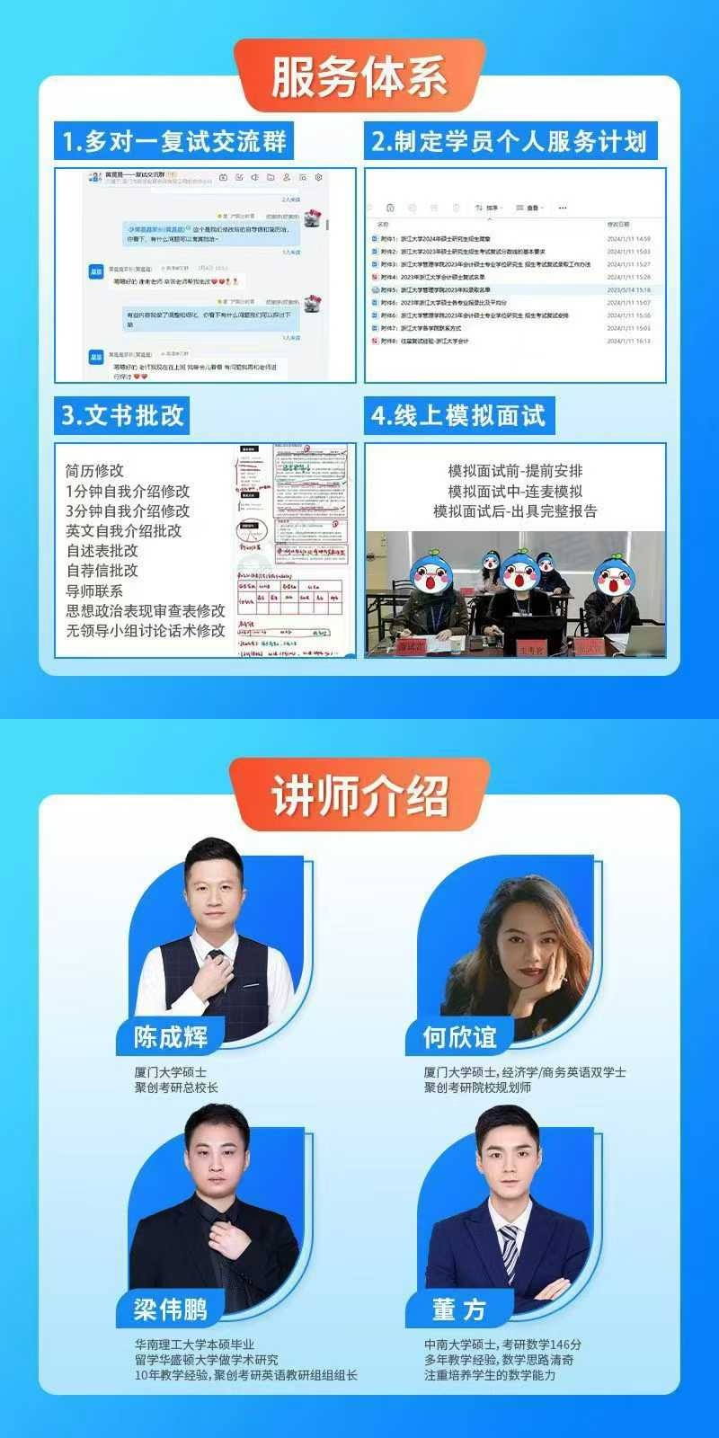 以上是聚创考研网为考生整理的"厦门考研复试线下集训营,厦门考研复试集训班价格表图"的相关考研信息,希望对大家考研备考有所帮助! 备考过程中如有疑问,也可以添加老师微信juchuang911进行咨询。