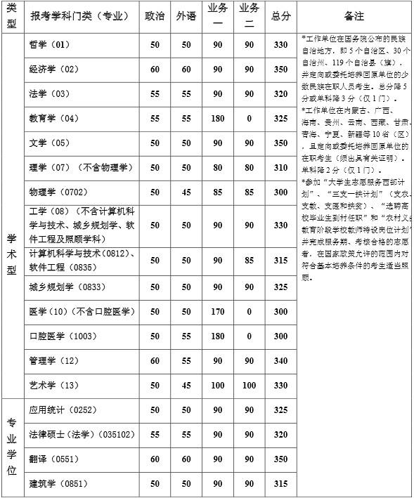 参加复试的分数线为:政治不低于 50 分,外语不低于50 分,业务课一不低于80 分,业务课二不低于80 分,总分不低于330 分。