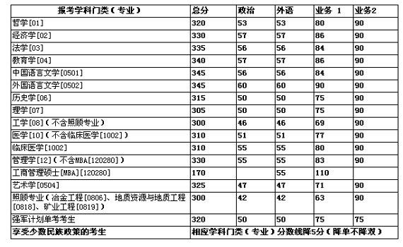 根据教育部有关文件精神,我校按照统考生、单考生、联考生等不同类型分别制订复试基本分数线。复试基本分数线如下: