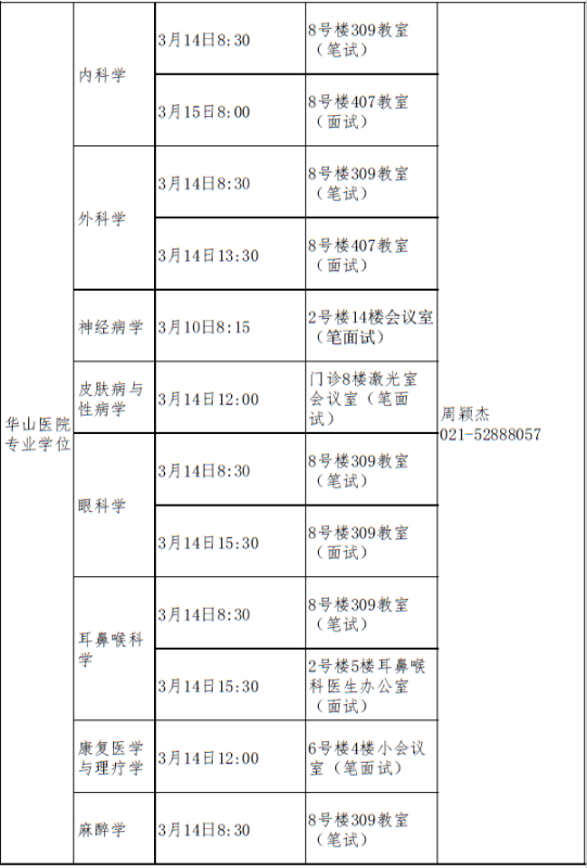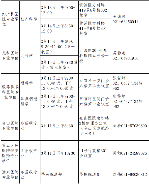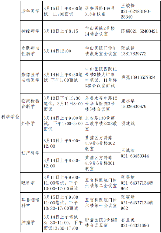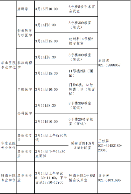 复试地点:请3月8日关注复旦研招网和上海医学院网站通知 |