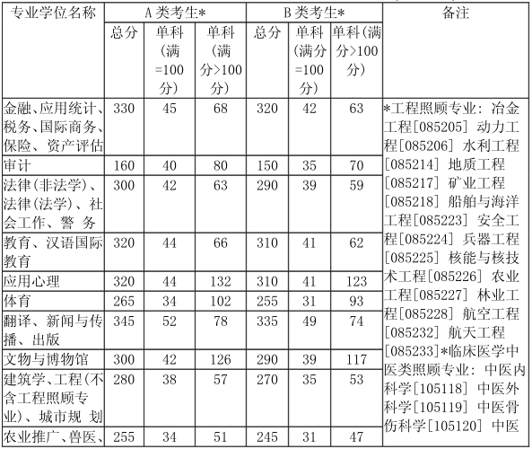 2015 年全国硕士研究生招生考试考生进入复试的初试成绩基本要求( 专业学位类)