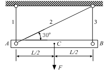 4. 已知如图所示结构中三杆的拉压刚度均为EA,设杆AB为刚性体,杆AB长L。则在载荷F作用下,C点的竖向位移为 ,水平位移为 。