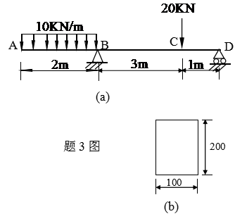 3、钢制外伸梁受力如图a)所示。截面尺寸如图b)所示(单位:mm)。已知。